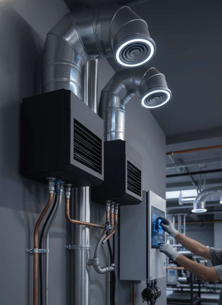 弊社では、建物の基盤となる「水まわり設備工事」を幅広く承っております。給排水・給湯設備工事をはじめ、衛生設備、ダクト工事、燃料配管、水道・浄化槽工事、水洗便所設備、ユニットバス工事など、管工事全般に対応。安全で快適な水環境を実現いたします。